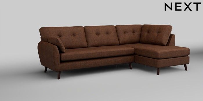 6.12.1 Buy Wilson Buttoned Back Large Corner Chaise - Right Hand Monza Faux Leather Easy Clean Chestnut Brown Retro Tapered - Dark Brown from the Next UK online shop Click here to use our accessible website