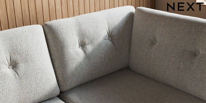 7.3.1 Buy Wilson Buttoned Back Large Corner Chaise - Right Hand Multi Weave Light Blue Retro Tapered - Dark Brown from the Next UK online shop