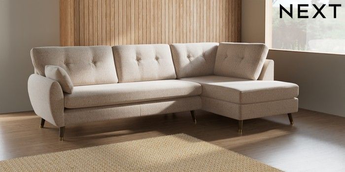 7.2.6 Buy Wilson Buttoned Back Large Corner Chaise - Right Hand Multi Weave Mid Natural Low Retro Tapered Metal Cap - Mid from the Next UK online shop Click here to use our accessible website