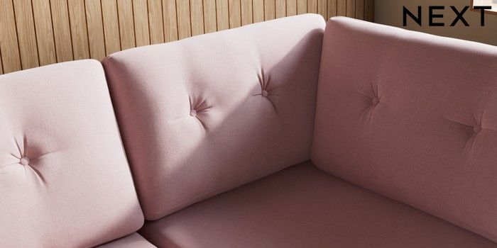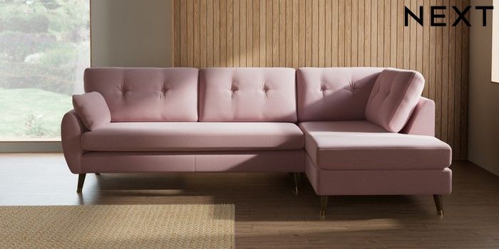 7.3.1 Buy Wilson Buttoned Back Large Corner Chaise - Right Hand Natural Mix Light Rose Pink Low Retro Tapered Metal Cap - Mid from the Next UK online shop Click here to use our accessible website