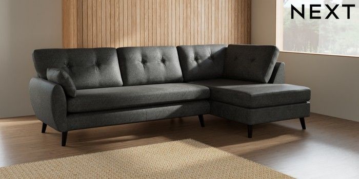 7.2.10 Buy Wilson Buttoned Back Large Corner Chaise - Right Hand Plush Chenille Dark Grey Retro Tapered - Dark from the Next UK online shop Click here to use our accessible website
