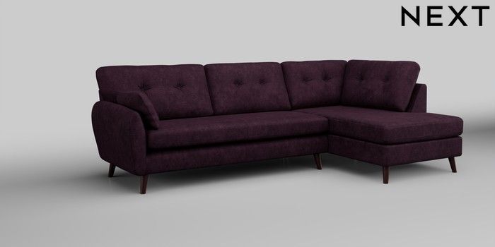 6.12.1 Buy Wilson Buttoned Back Large Corner Chaise - Right Hand Plush Chenille Dark Plum Purple Retro Tapered - Dark Brown from the Next UK online shop Click here to use our accessible website