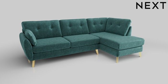 6.12.13 Buy Wilson Buttoned Back Large Corner Chaise - Right Hand Plush Chenille Dark Teal Green Metal Tapered - Gold from the Next UK online shop Click here to use our accessible website