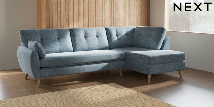 7.2.6 Buy Wilson Buttoned Back Large Corner Chaise - Right Hand Plush Chenille Light Blue Retro Tapered - Light from the Next UK online shop Click here to use our accessible website