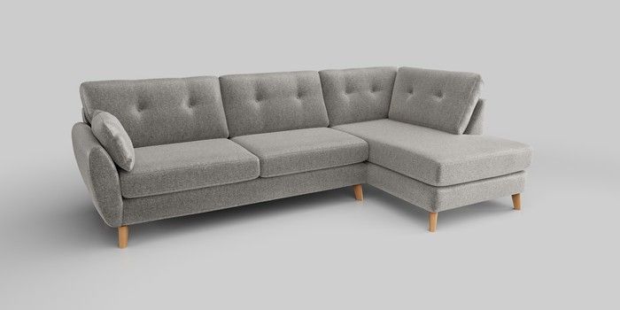 6.12.1 Buy Wilson Buttoned Back Large Corner Chaise - Right Hand Plush Chenille Light Grey Retro Tapered - Light from the Next UK online shop Click here to use our accessible website