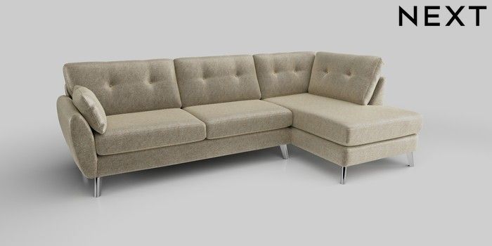 6.12.13 Buy Wilson Buttoned Back Large Corner Chaise - Right Hand Plush Chenille Light Natural Metal Tapered - Chrome from the Next UK online shop Click here to use our accessible website
