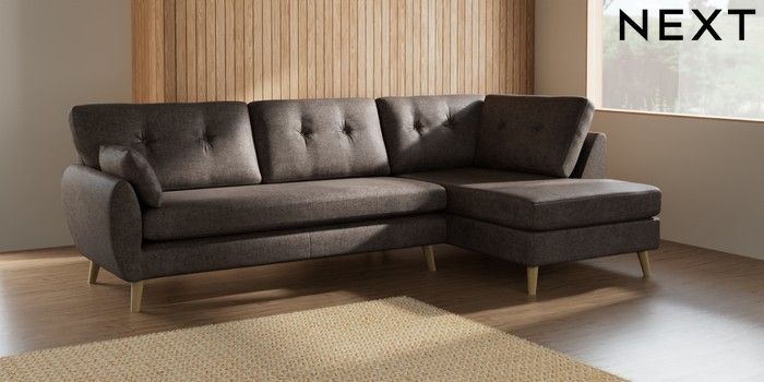 7.2.10 Buy Wilson Buttoned Back Large Corner Chaise - Right Hand Plush Chenille Mink Brown Retro Tapered - Light from the Next UK online shop Click here to use our accessible website