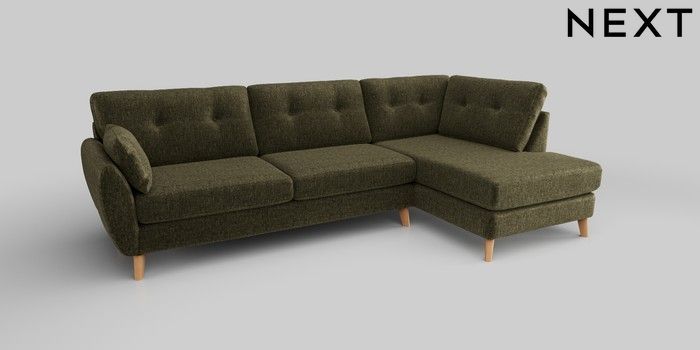 6.12.1 Buy Wilson Buttoned Back Large Corner Chaise - Right Hand Plush Chenille Moss Green Retro Tapered - Light from the Next UK online shop Click here to use our accessible website