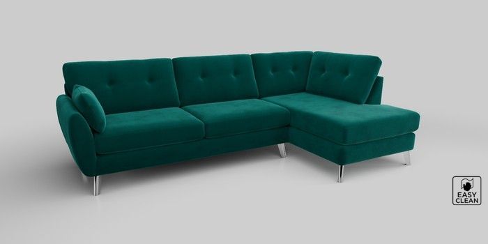 6.12.13 Buy Wilson Buttoned Back Large Corner Chaise - Right Hand Plush Velvet Easy Clean Juniper Green Metal Tapered - Chrome from the Next UK online shop Click here to use our accessible website
