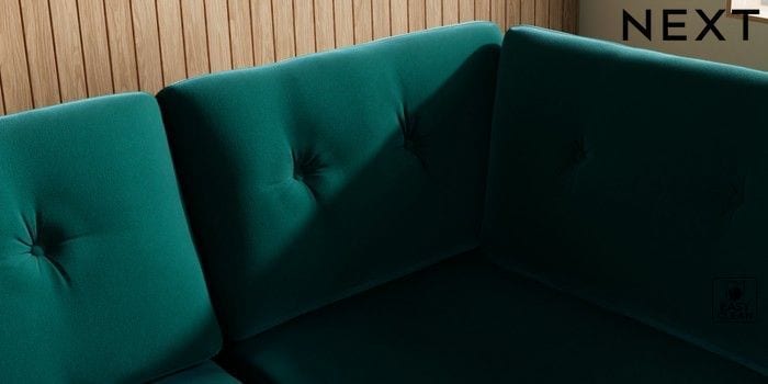 7.3.1 Buy Wilson Buttoned Back Large Corner Chaise - Right Hand Plush Velvet Easy Clean Juniper Green Metal Tapered - Gold from the Next UK online shop Click here to use our accessible website