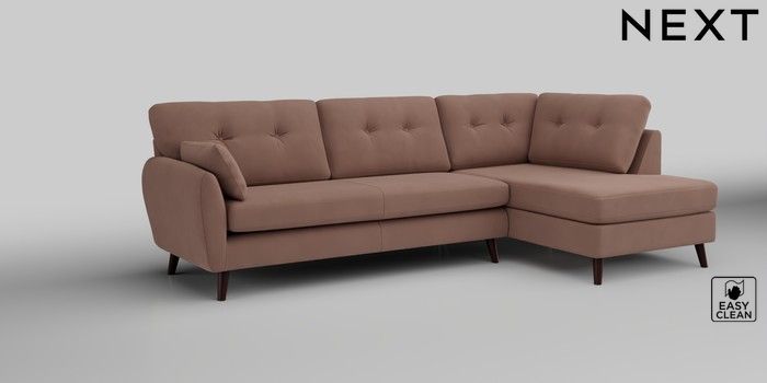 6.12.1 Buy Wilson Buttoned Back Large Corner Chaise - Right Hand Plush Velvet Easy Clean Mid Natural Retro Tapered - Dark Brown from the Next UK online shop Click here to use our accessible website