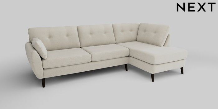 6.12.1 Buy Wilson Buttoned Back Large Corner Chaise - Right Hand Relaxed Linen Look Oyster Retro Tapered - Dark from the Next UK online shop Click here to use our accessible website