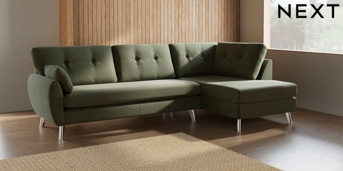 7.3.1 Buy Wilson Buttoned Back Large Corner Chaise - Right Hand Ripple Chenille Mid Moss Green Metal Tapered - Chrome from the Next UK online shop Click here to use our accessible website