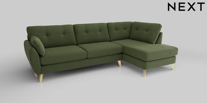6.12.1 Buy Wilson Buttoned Back Large Corner Chaise - Right Hand Ripple Chenille Mid Moss Green Metal Tapered - Gold from the Next UK online shop Click here to use our accessible website