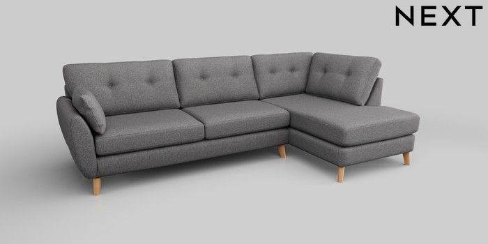 6.12.1 Buy Wilson Buttoned Back Large Corner Chaise - Right Hand Studio Chenille Mid Grey Retro Tapered - Light from the Next UK online shop Click here to use our accessible website