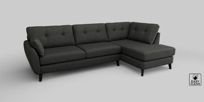 6.12.1 Buy Wilson Buttoned Back Large Corner Chaise - Right Hand Tweedy Blend Easy Clean Charcoal Grey Retro Tapered - Dark from the Next UK online shop Click here to use our accessible website