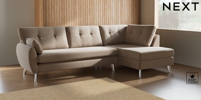 7.3.1 Buy Wilson Buttoned Back Large Corner Chaise - Right Hand Tweedy Blend Easy Clean Light Dove Natural Metal Tapered - Chrome from the Next UK online shop Click here to use our accessible website