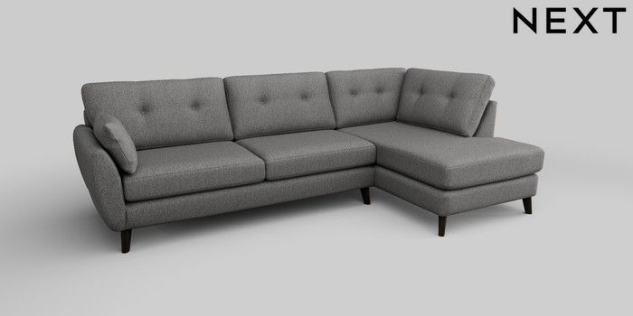 6.12.13 Buy Wilson Buttoned Back Large Corner Chaise - Right Hand Tweedy Chenille Dark Grey Retro Tapered - Dark from the Next UK online shop Click here to use our accessible website
