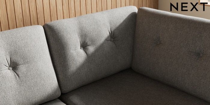 7.3.1 Buy Wilson Buttoned Back Large Corner Chaise - Right Hand Tweedy Chenille Mid Grey Low Retro Tapered Metal Cap - Mid from the Next UK online shop Click here to use our accessible website