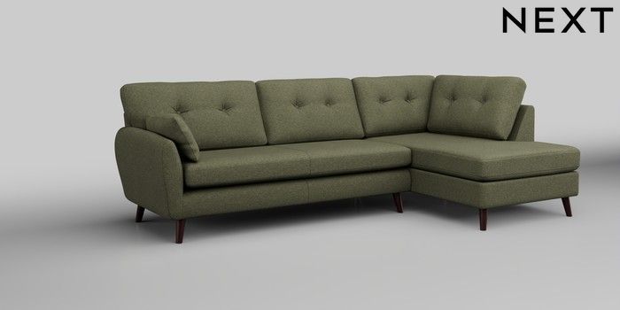 6.12.1 Buy Wilson Buttoned Back Large Corner Chaise - Right Hand Tweedy Chenille Mid Moss Green Retro Tapered - Dark Brown from the Next UK online shop Click here to use our accessible website