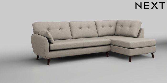 6.12.1 Buy Wilson Buttoned Back Large Corner Chaise - Right Hand Tweedy Chenille Oyster Retro Tapered - Dark Brown from the Next UK online shop Click here to use our accessible website