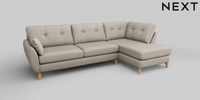 6.12.1 Buy Wilson Buttoned Back Large Corner Chaise - Right Hand Tweedy Chenille Oyster Retro Tapered - Light from the Next UK online shop Click here to use our accessible website