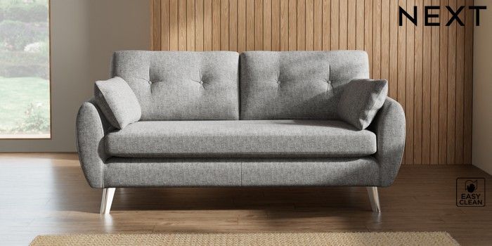 7.2.10 Buy Wilson Buttoned Back 3 Seater Small Sofa Chunky Boucle Easy Clean Light Grey Metal Tapered - Chrome from the Next UK online shop Click here to use our accessible website