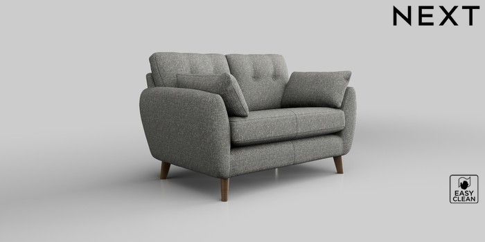 6.12.1 Buy Wilson Buttoned Back 2 Seater Small Sofa Chunky Boucle Easy Clean Mid Grey Retro Tapered - Mid from the Next UK online shop Click here to use our accessible website