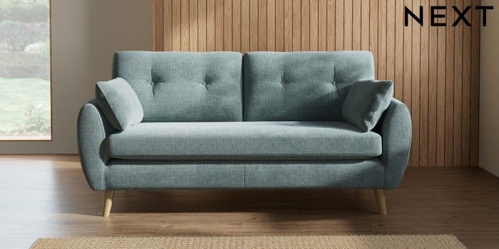 7.2.10 Buy Wilson Buttoned Back 3 Seater Small Sofa Chunky Chenille Light Teal Green Retro Tapered - Light from the Next UK online shop Click here to use our accessible website