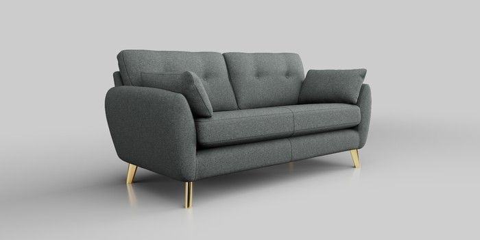 6.12.1 Buy Wilson Buttoned Back 3 Seater Small Sofa Chunky Weave Mid Grey Metal Tapered - Gold from the Next UK online shop Click here to use our accessible website