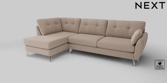 6.12.1 Buy Wilson Buttoned Back Large Corner Chaise - Left Hand Fine Chenille Easy Clean Mid Taupe Brown Metal Tapered - Chrome from the Next UK online shop Click here to use our accessible website