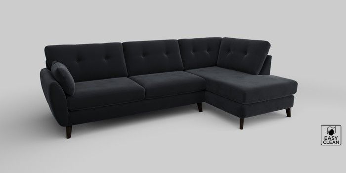 6.12.1 Buy Wilson Buttoned Back Large Corner Chaise - Right Hand Plush Velvet Easy Clean Charcoal Grey Retro Tapered - Dark from the Next UK online shop Click here to use our accessible website