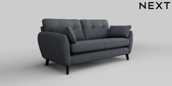 6.12.1 Buy Wilson Buttoned Back 3 Seater Small Sofa Tweedy Chenille Navy Blue Retro Tapered - Dark from the Next UK online shop Click here to use our accessible website