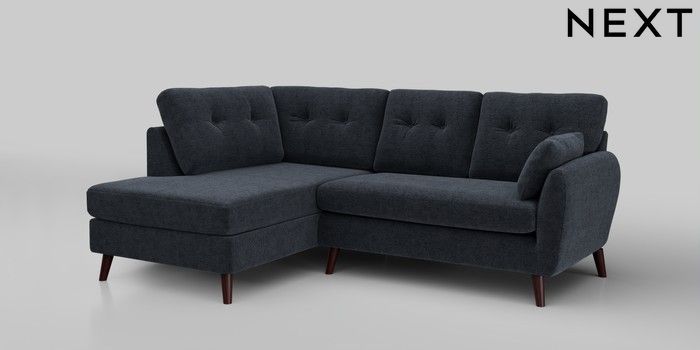 6.12.1 Buy Wilson Buttoned Back Medium Corner Chaise - Left Hand Boucle Chenille Dark Slate Blue Retro Tapered - Dark Brown from the Next UK online shop Click here to use our accessible website