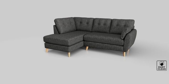 6.12.1 Buy Wilson Buttoned Back Medium Corner Chaise - Left Hand Boucle Weave Easy Clean Charcoal Grey Retro Tapered - Light from the Next UK online shop Click here to use our accessible website