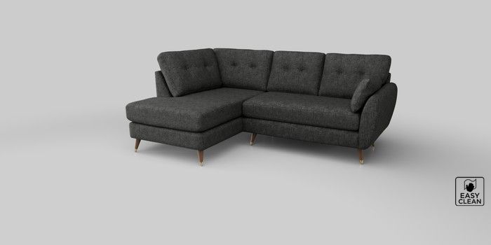 6.12.1 Buy Wilson Buttoned Back Medium Corner Chaise - Left Hand Boucle Weave Easy Clean Charcoal Grey Low Retro Tapered Metal Cap - Mid from the Next UK online shop Click here to use our accessible website