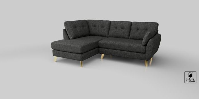 6.12.1 Buy Wilson Buttoned Back Medium Corner Chaise - Left Hand Boucle Weave Easy Clean Charcoal Grey Metal Tapered - Gold from the Next UK online shop Click here to use our accessible website