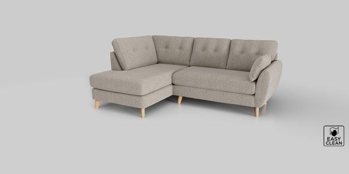 6.12.1 Buy Wilson Buttoned Back Medium Corner Chaise - Left Hand Chunky Boucle Easy Clean Dove Retro Tapered - Light from the Next UK online shop Click here to use our accessible website