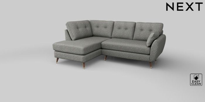 6.12.1 Buy Wilson Buttoned Back Medium Corner Chaise - Left Hand Chunky Boucle Easy Clean Mid Grey Low Retro Tapered Metal Cap - Mid from the Next UK online shop Click here to use our accessible website