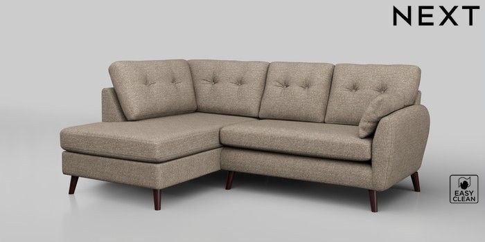 6.12.1 Buy Wilson Buttoned Back Medium Corner Chaise - Left Hand Chunky Boucle Easy Clean Mid Natural Retro Tapered - Dark Brown from the Next UK online shop Click here to use our accessible website