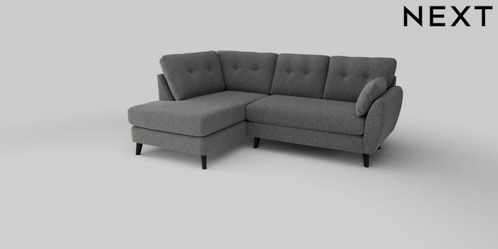 6.12.13 Buy Wilson Buttoned Back Medium Corner Chaise - Left Hand Chunky Chenille Dark Grey Retro Tapered - Dark from the Next UK online shop Click here to use our accessible website