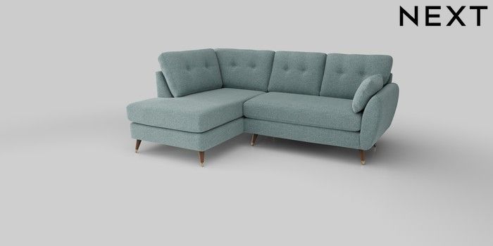 6.12.1 Buy Wilson Buttoned Back Medium Corner Chaise - Left Hand Chunky Chenille Light Teal Green Low Retro Tapered Metal Cap - Mid from the Next UK online shop Click here to use our accessible website