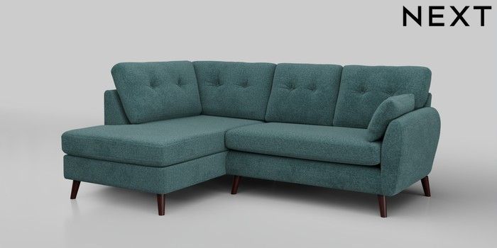 6.12.1 Buy Wilson Buttoned Back Medium Corner Chaise - Left Hand Chunky Chenille Mid Teal Green Retro Tapered - Dark Brown from the Next UK online shop Click here to use our accessible website