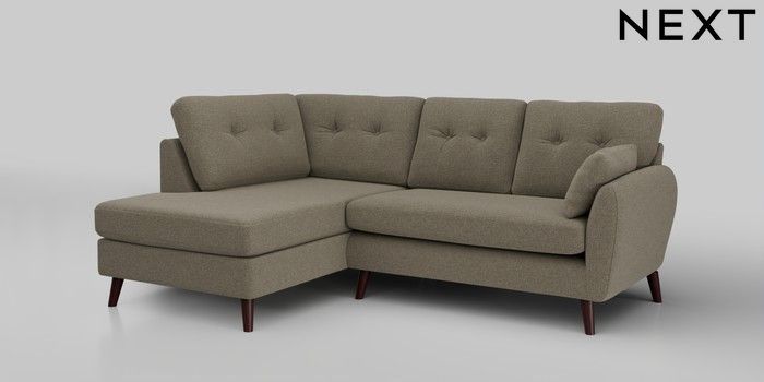 6.12.1 Buy Wilson Buttoned Back Medium Corner Chaise - Left Hand Chunky Marl Light Olive Green Retro Tapered - Dark Brown from the Next UK online shop Click here to use our accessible website