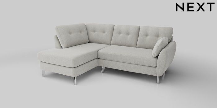 6.12.1 Buy Wilson Buttoned Back Medium Corner Chaise - Left Hand Chunky Texture Dove Metal Tapered - Chrome from the Next UK online shop Click here to use our accessible website