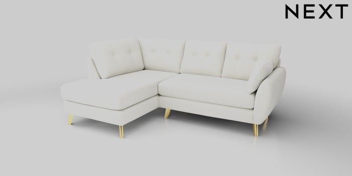 6.12.1 Buy Wilson Buttoned Back Medium Corner Chaise - Left Hand Chunky Texture Oyster Metal Tapered - Gold from the Next UK online shop Click here to use our accessible website