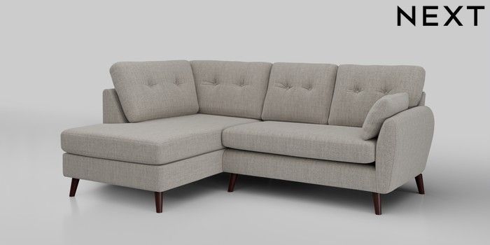 6.12.1 Buy Wilson Buttoned Back Medium Corner Chaise - Left Hand Chunky Weave Dove Grey Retro Tapered - Dark Brown from the Next UK online shop Click here to use our accessible website