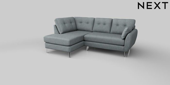 6.12.1 Buy Wilson Buttoned Back Medium Corner Chaise - Left Hand Chunky Weave Mid Blue Metal Tapered - Chrome from the Next UK online shop Click here to use our accessible website