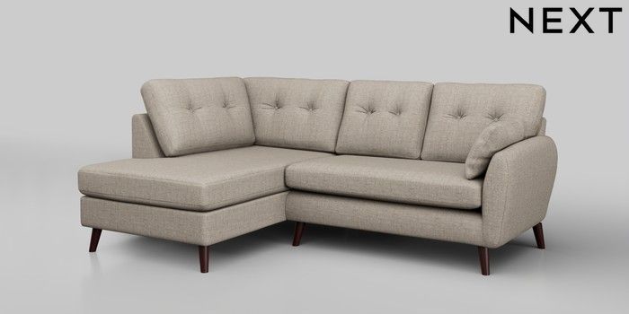 6.12.1 Buy Wilson Buttoned Back Medium Corner Chaise - Left Hand Chunky Weave Mid Natural Retro Tapered - Dark Brown from the Next UK online shop Click here to use our accessible website