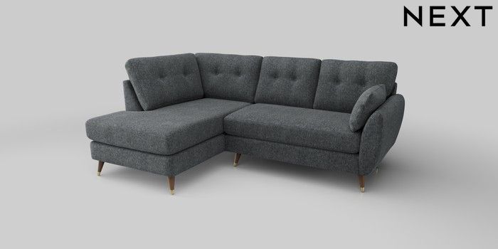 6.12.13 Buy Wilson Buttoned Back Medium Corner Chaise - Left Hand Cotswold Chenille Dark Grey Low Retro Tapered Metal Cap - Mid from the Next UK online shop Click here to use our accessible website